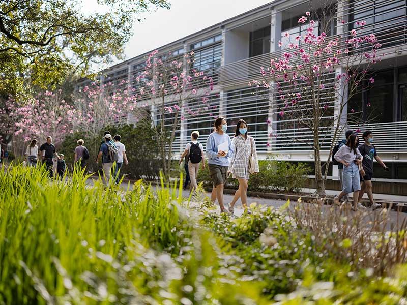 Japanese magnolias, azaleas and irises are once again blooming and sprouting fresh green leaves across campus, signaling that spring is here. The days are longer and getting warmer, and students and faculty are venturing outside more. Take a moment to admire Tulane University’s ‘most beautiful’ campus. Photo by Rusty Costanza.
