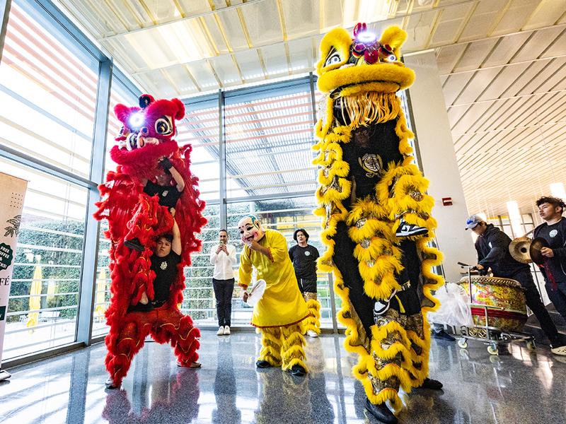 Global Café, a weekly gathering for international and internationally minded Tulane students, faculty and staff, presented a Lunar New Year celebration in the Rosenberg Mezzanine at the Lavin-Bernick Center for University Life (LBC) on Tuesday, Jan. 24. The event, hosted by the Tulane Chinese Students and Scholars Association and the Tulane University Vietnamese Association, featured food, activities and a lion dance. Lunar New Year 2023 is the Year of the Rabbit.