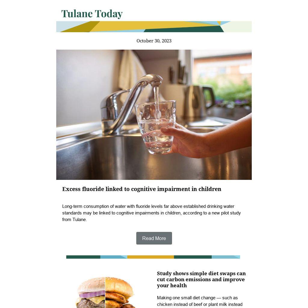 | | | | Long-term consumption of water with fluoride levels far above established drinking water standards may be linked to cognitive impairments in children, according to a new pilot study from Tulane. |