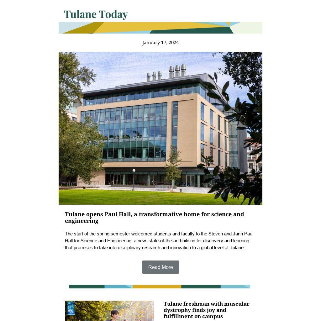 The start of the spring semester welcomed students and faculty to the Steven and Jann Paul Hall for Science and Engineering, a new, state-of-the-art building for discovery and learning that promises to take interdisciplinary research and innovation to a global level at Tulane.