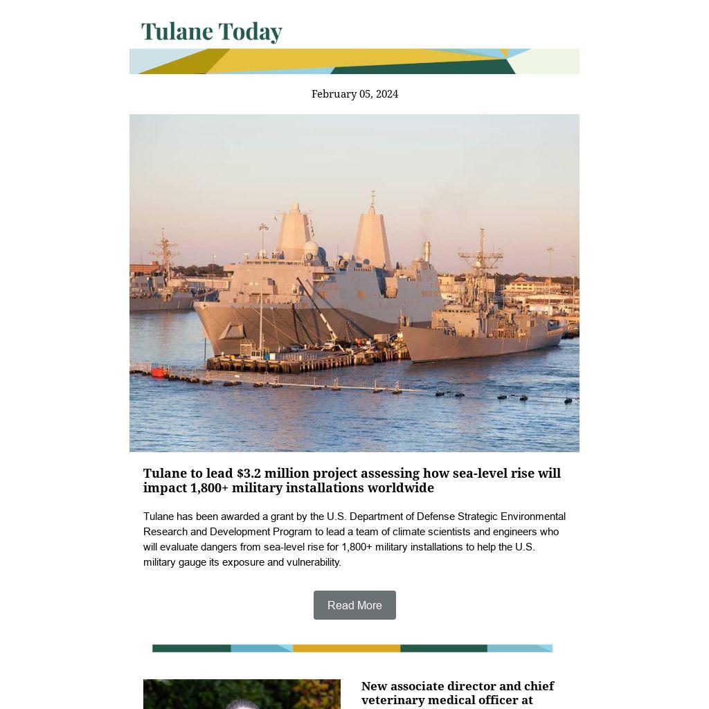 Tulane has been awarded a grant by the U.S. Department of Defense Strategic Environmental Research and Development Program to lead a team of climate scientists and engineers who will evaluate dangers from sea-level rise for 1,800+ military installations to help the U.S. military gauge its exposure and vulnerability.