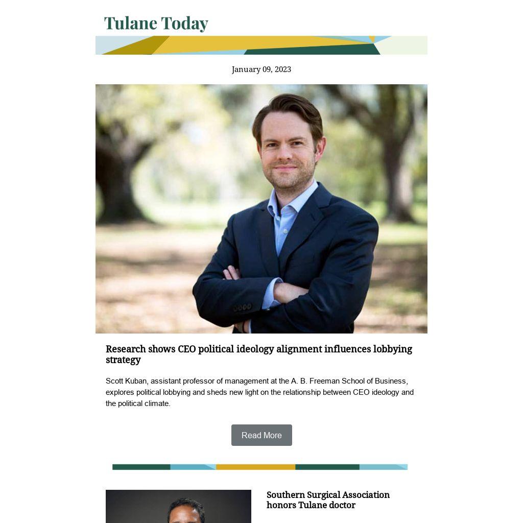The Tulane Freeman Ukrainian Speaker Series will continue on Friday, Jan. 13, with a lecture by Maksym Obrizan, associate professor of economics at the Kyiv School of Economics. The lecture, titled “The War on Corruption Following the Revolution of Dignity: Progress and Pitfalls” will take place from noon to 1 p.m. via Zoom. The speaker series was established by the A. B. Freeman School of Business to promote the research and vision of Ukrainian scholars and educators as the country grapples with the effects of the Russian invasion. Visit the Freeman website for more information.