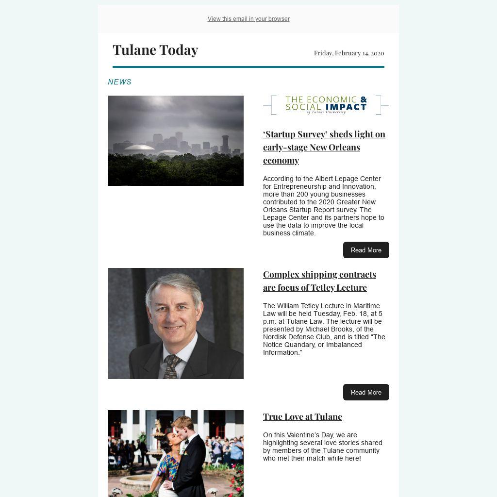 Tulane Today accepts, for consideration, news and event submissions that are of interest to the Tulane community. Items must be 80 words or less and contain contact information and a web link that will be included in the published announcement.