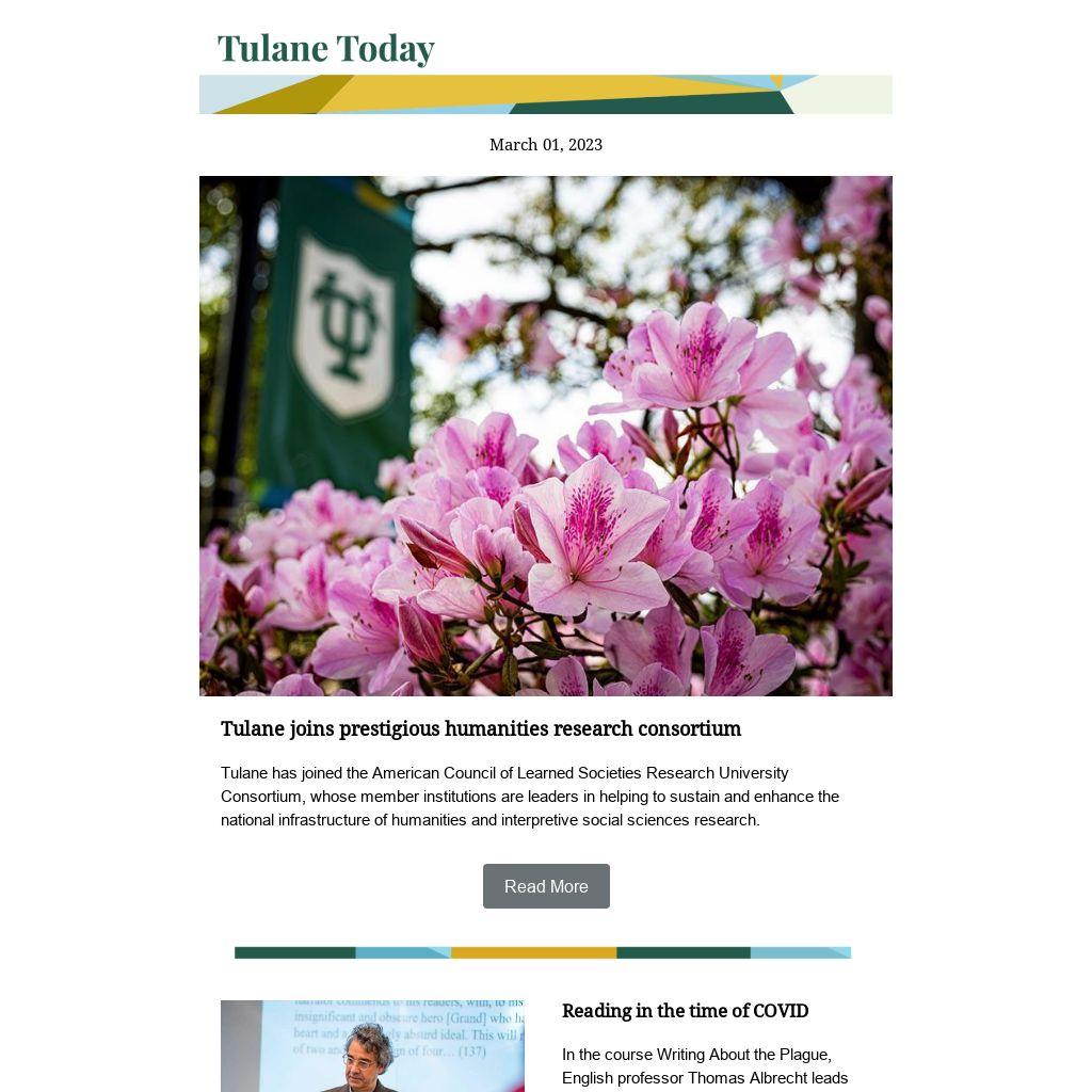 In the course Writing About the Plague, English professor Thomas Albrecht leads students in a literary exploration of pandemic experiences. Read more, along with the latest issue of Tulanian Magazine, on the Tulanian website.
