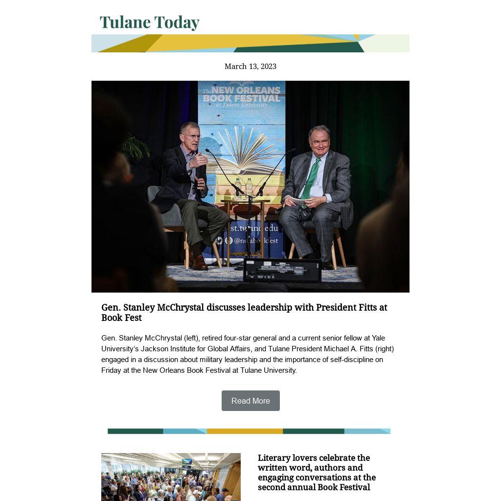 The second annual New Orleans Book Festival at Tulane University had the uptown campus buzzing with literary lovers, more than 130 local, regional and national authors, and a range of inspiring panel discussions. See the photos on the Tulane News website.