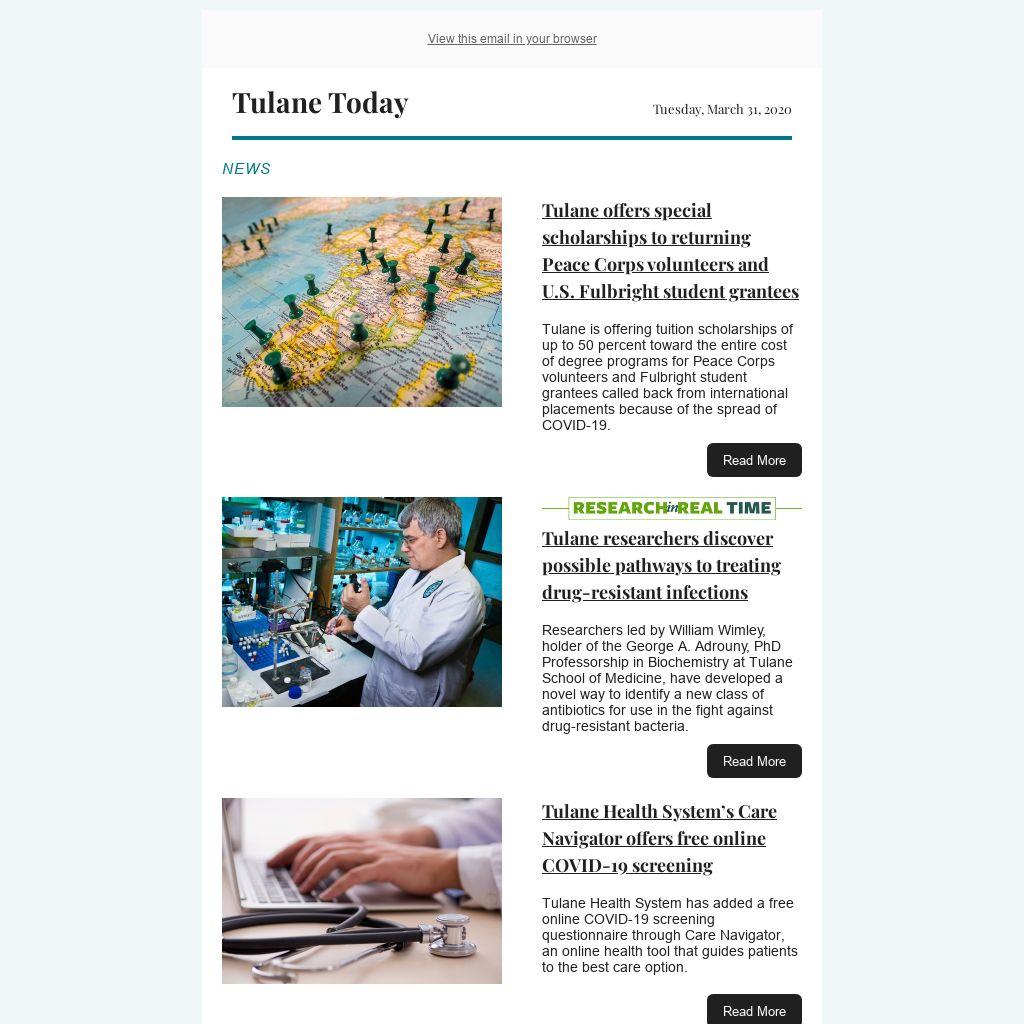 Tulane is offering tuition scholarships of up to 50 percent toward the entire cost of degree programs for Peace Corps volunteers and Fulbright student grantees called back from international placements because of the spread of COVID-19.