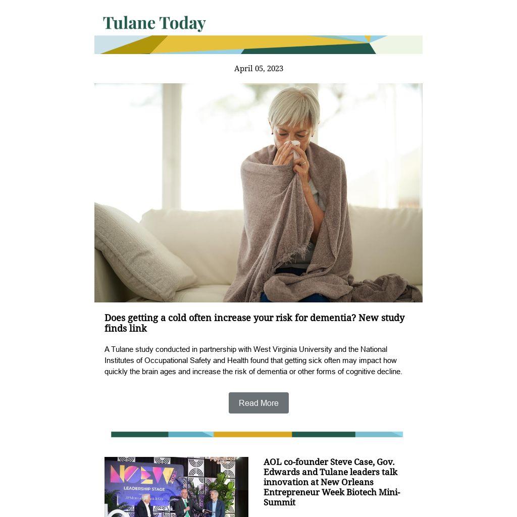 A Tulane study conducted in partnership with West Virginia University and the National Institutes of Occupational Safety and Health found that getting sick often may impact how quickly the brain ages and increase the risk of dementia or other forms of cognitive decline.