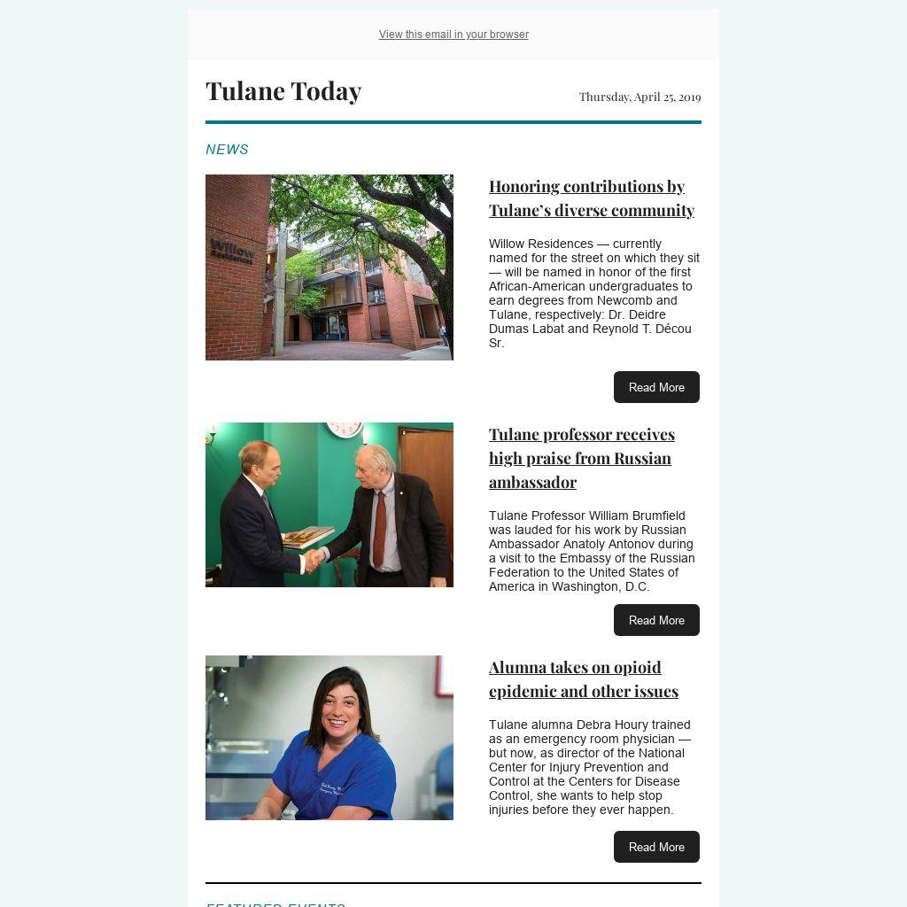 Tulane Today accepts, for consideration, news and event submissions that are of interest to the Tulane community. Items must be 80 words or less and contain contact information and a web link that will be included in the published announcement.