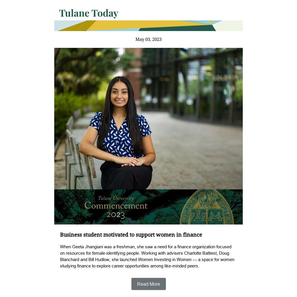 When Geeta Jhangiani was a freshman, she saw a need for a finance organization focused on resources for female-identifying people. Working with advisers Charlotte Battiest, Doug Blanchard and Bill Hudlow, she launched Women Investing in Women — a space for women studying finance to explore career opportunities among like-minded peers.