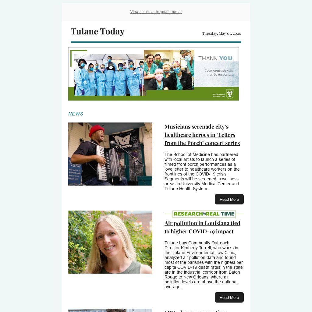 School of Social Work alumna Angelique Thomas works with the Innocence Project New Orleans, a nonprofit law office working to free innocent, life-sentenced individuals and support them after their release. Thomas and her team are providing guidance to clients remotely and delivering essential items like groceries, cleaning supplies and masks.