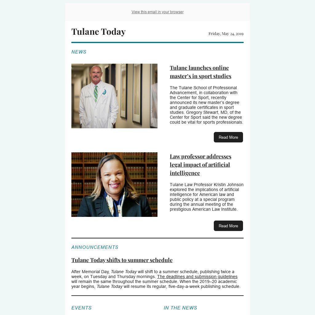 The Tulane School of Professional Advancement, in collaboration with the Center for Sport, recently announced its new master’s degree and graduate certificates in sport studies. Gregory Stewart, MD, of the Center for Sport said the new degree could be vital for sports professionals.