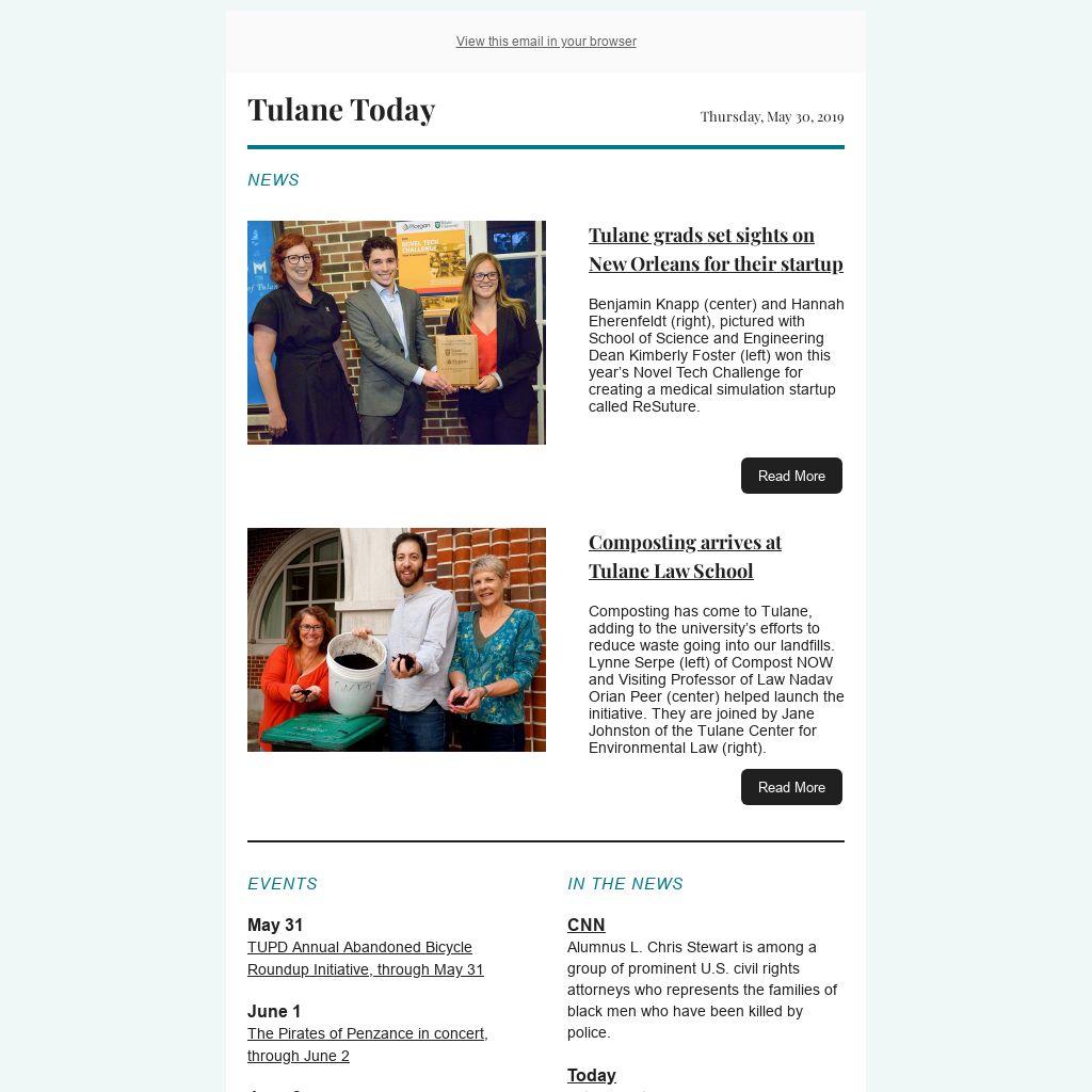 Composting has come to Tulane, adding to the university’s efforts to reduce waste going into our landfills. Lynne Serpe (left) of Compost NOW and Visiting Professor of Law Nadav Orian Peer (center) helped launch the initiative. They are joined by Jane Johnston of the Tulane Center for Environmental Law (right).