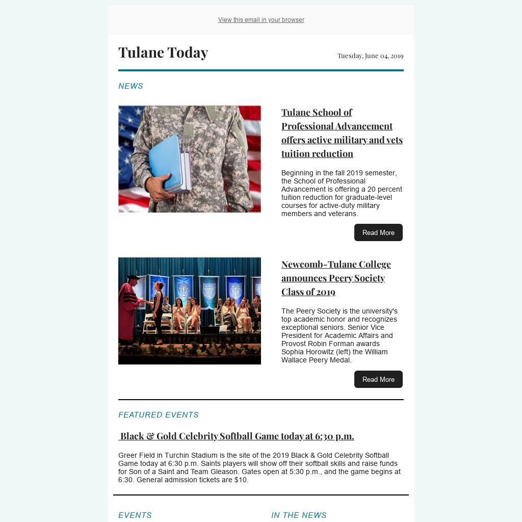 Greer Field in Turchin Stadium is the site of the 2019 Black & Gold Celebrity Softball Game today at 6:30 p.m. Saints players will show off their softball skills and raise funds for Son of a Saint and Team Gleason. Gates open at 5:30 p.m., and the game begins at 6:30. General admission tickets are $10.