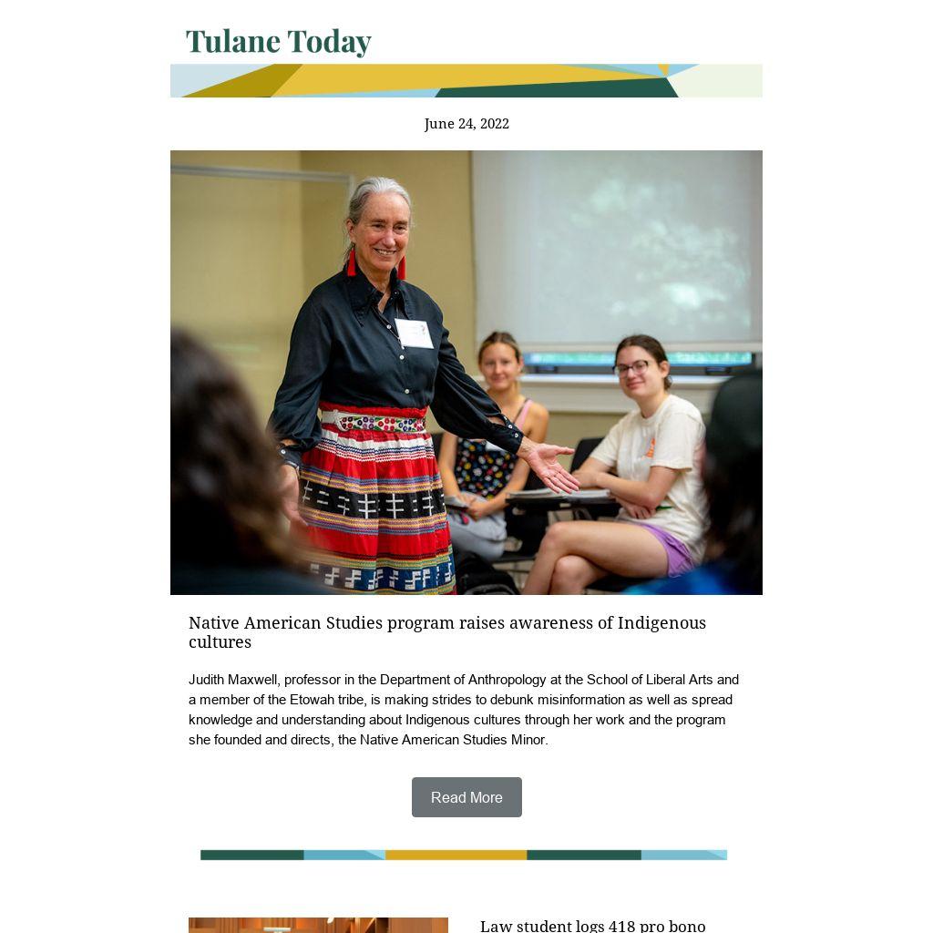 Tulane Today accepts, for consideration, news and event submissions that are of interest to the Tulane community. Items must be 80 words or less and contain contact information and a web link that will be included in the published announcement.