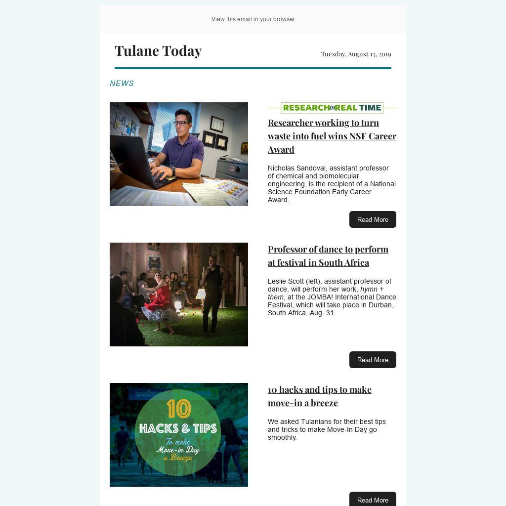 Tulane Today accepts, for consideration, news and event submissions that are of interest to the Tulane community. Items must be 80 words or less and contain contact information and a web link that will be included in the published announcement.