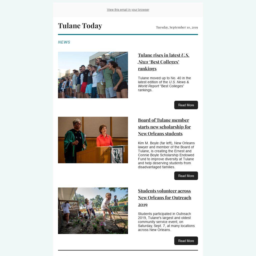 Tulane Today accepts, for consideration, news and event submissions that are of interest to the Tulane community. Items must be 80 words or less and contain contact information and a web link that will be included in the published announcement.