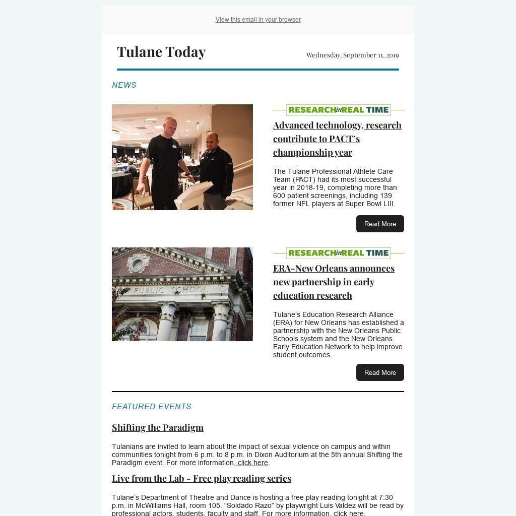 Tulane Today accepts, for consideration, news and event submissions that are of interest to the Tulane community. Items must be 80 words or less and contain contact information and a web link that will be included in the published announcement.