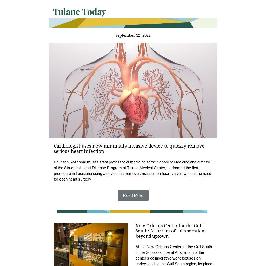 Tulane Today accepts, for consideration, news and event submissions that are of interest to the Tulane community. Items must be 80 words or less and contain contact information and a web link that will be included in the published announcement.