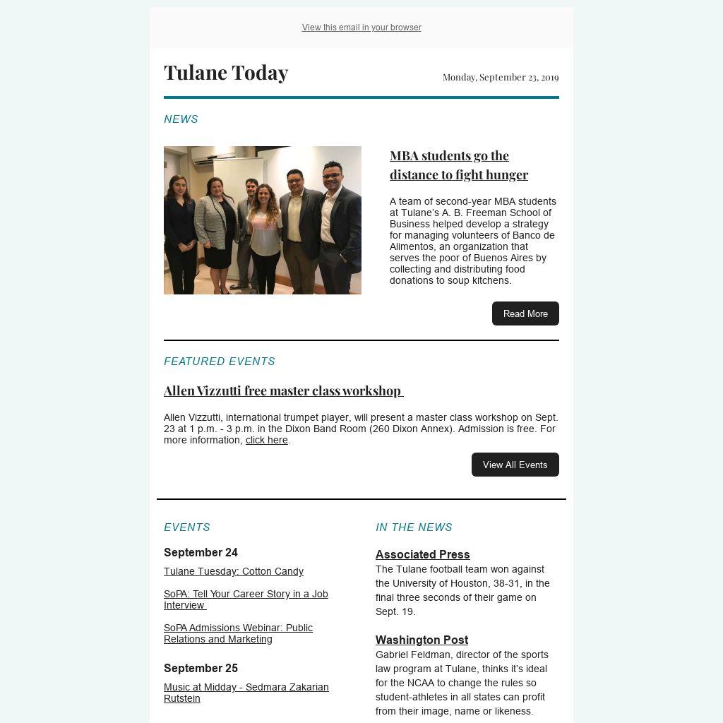 A team of second-year MBA students at Tulane’s A. B. Freeman School of Business helped develop a strategy for managing volunteers of Banco de Alimentos, an organization that serves the poor of Buenos Aires by collecting and distributing food donations to soup kitchens.
