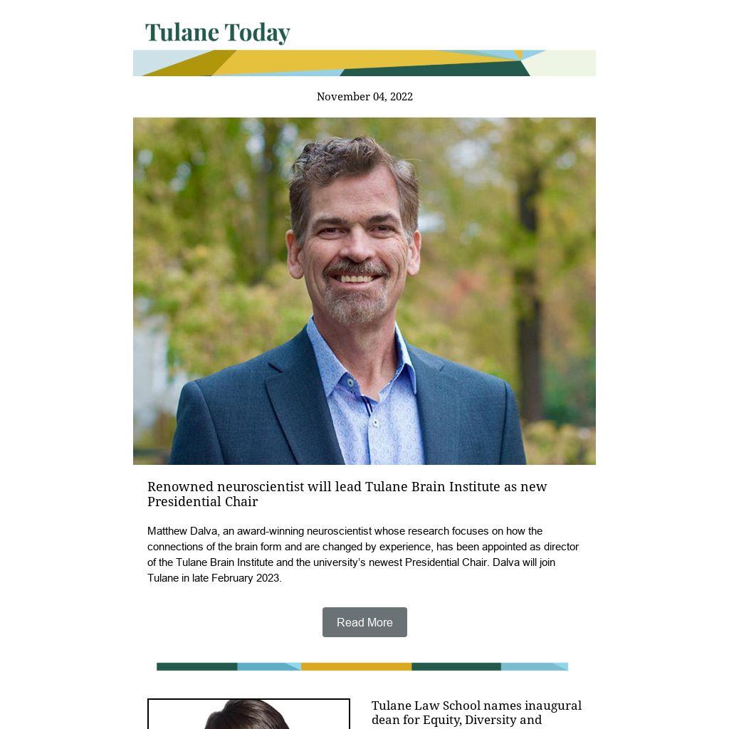 Matthew Dalva, an award-winning neuroscientist whose research focuses on how the connections of the brain form and are changed by experience, has been appointed as director of the Tulane Brain Institute and the university’s newest Presidential Chair. Dalva will join Tulane in late February 2023.