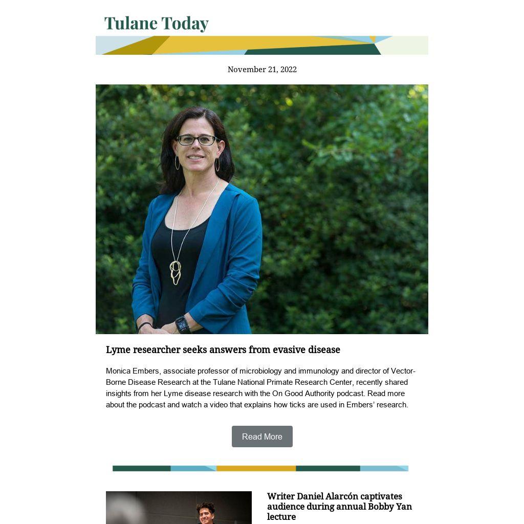 Monica Embers, associate professor of microbiology and immunology and director of Vector-Borne Disease Research at the Tulane National Primate Research Center, recently shared insights from her Lyme disease research with the On Good Authority podcast. Read more about the podcast and watch a video that explains how ticks are used in Embers’ research.