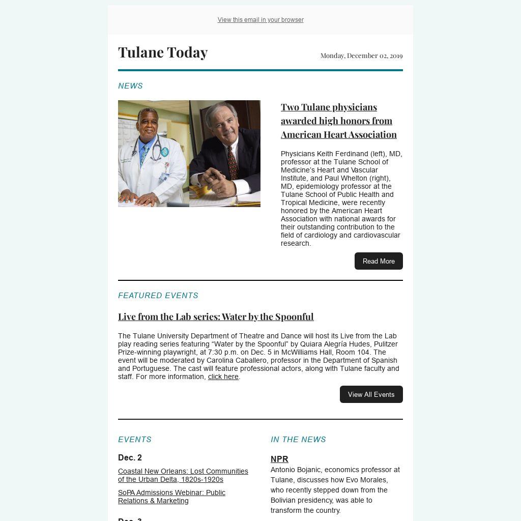 Physicians Keith Ferdinand (left), MD, professor at the Tulane School of Medicine’s Heart and Vascular Institute, and Paul Whelton (right), MD, epidemiology professor at the Tulane School of Public Health and Tropical Medicine, were recently honored by the American Heart Association with national awards for their outstanding contribution to the field of cardiology and cardiovascular research.