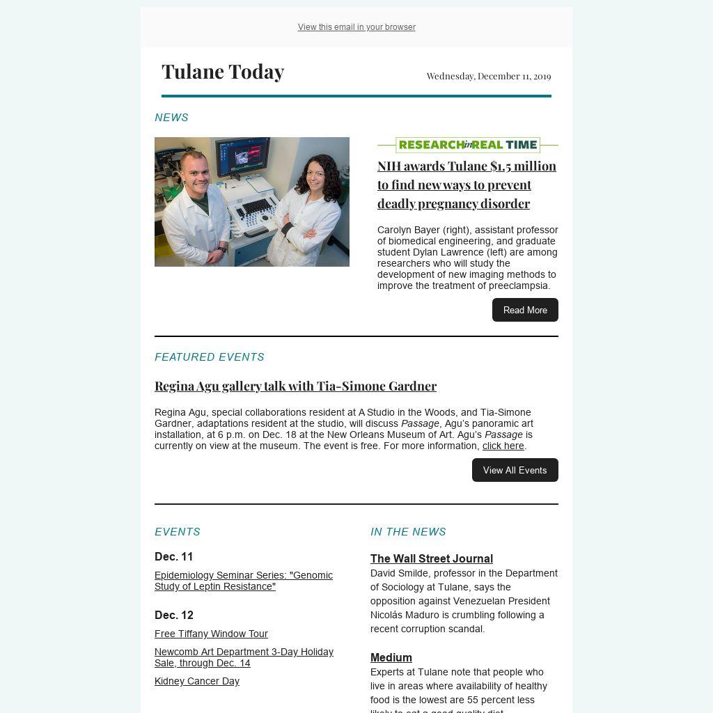 Tulane Today accepts, for consideration, news and event submissions that are of interest to the Tulane community. Items must be 80 words or less and contain contact information and a web link that will be included in the published announcement.