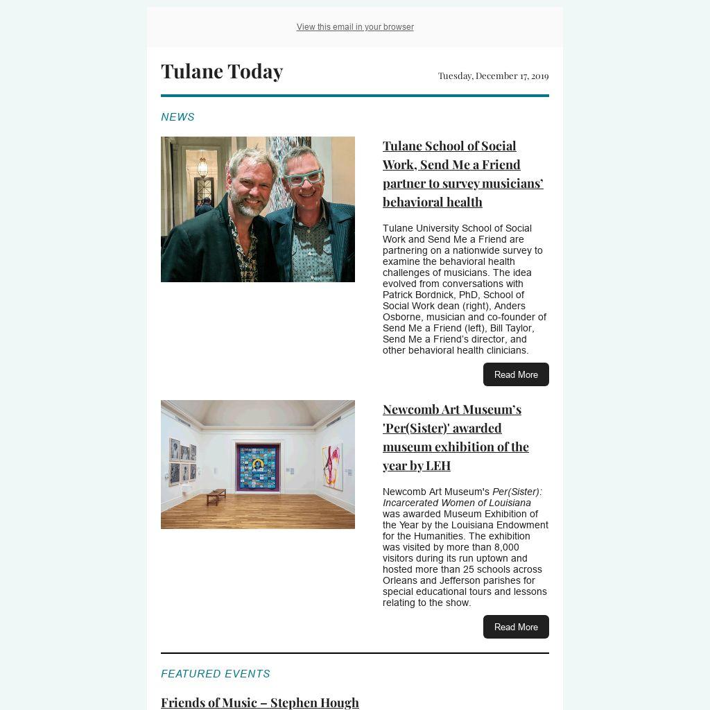 Tulane University School of Social Work and Send Me a Friend are partnering on a nationwide survey to examine the behavioral health challenges of musicians. The idea evolved from conversations with Patrick Bordnick, PhD, School of Social Work dean (right), Anders Osborne, musician and co-founder of Send Me a Friend (left), Bill Taylor, Send Me a Friend’s director, and other behavioral health clinicians.