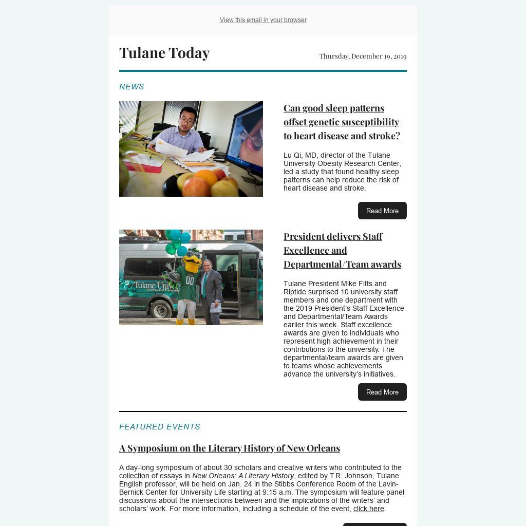 Tulane President Mike Fitts and Riptide surprised 10 university staff members and one department with the 2019 President’s Staff Excellence and Departmental/Team Awards earlier this week. Staff excellence awards are given to individuals who represent high achievement in their contributions to the university. The departmental/team awards are given to teams whose achievements advance the university’s initiatives.